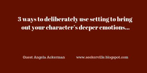 Positive and negative, emotions are the lifeblood of a story. The setting we choose for each scene is a vehicle to bring out a wider range of emotions, including those that provide a window for readers to see inside the character and the struggle going on within. Here are three ways you can deliberately use the setting to bring out your character’s deeper emotions.