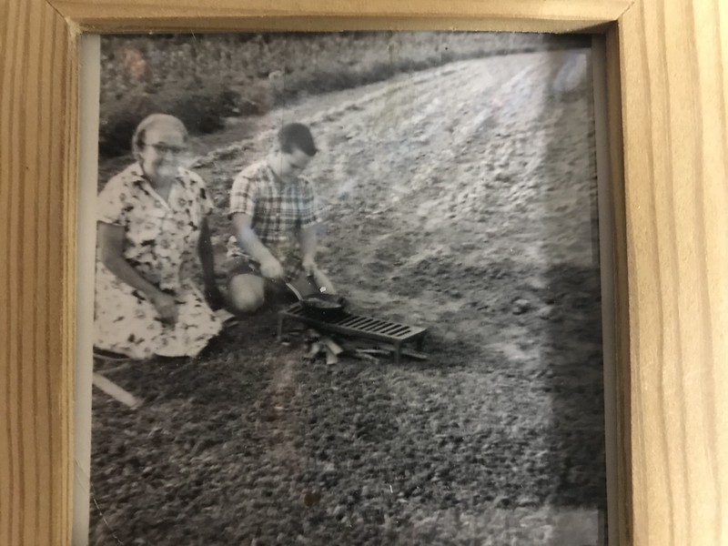 It seems I’ve always liked cooking over fire. Here, I still remember the sausage patties. And, the huge garden spot beyond.