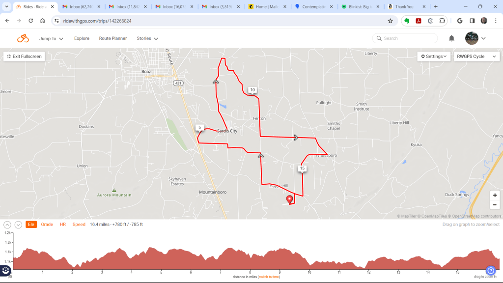 Here’s today’s bike ride metrics. Temperature at beginning of ride: 53 degrees. Sunny and warm; very little wind.